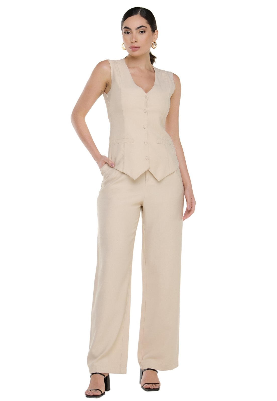 Colete elegante e sofisticado, confeccionado em 90% viscose e 10% poliéster, garantindo um toque suave e caimento perfeito. Com corte reto, fechamento em botões encapados, e bolsos fakes frontais, ele adiciona um toque moderno e refinado ao seu look. Ideal para compor produções profissionais ou dar um ar de elegância a combinações casuais, esse colete é a escolha certa para quem busca praticidade sem abrir mão do estilo.