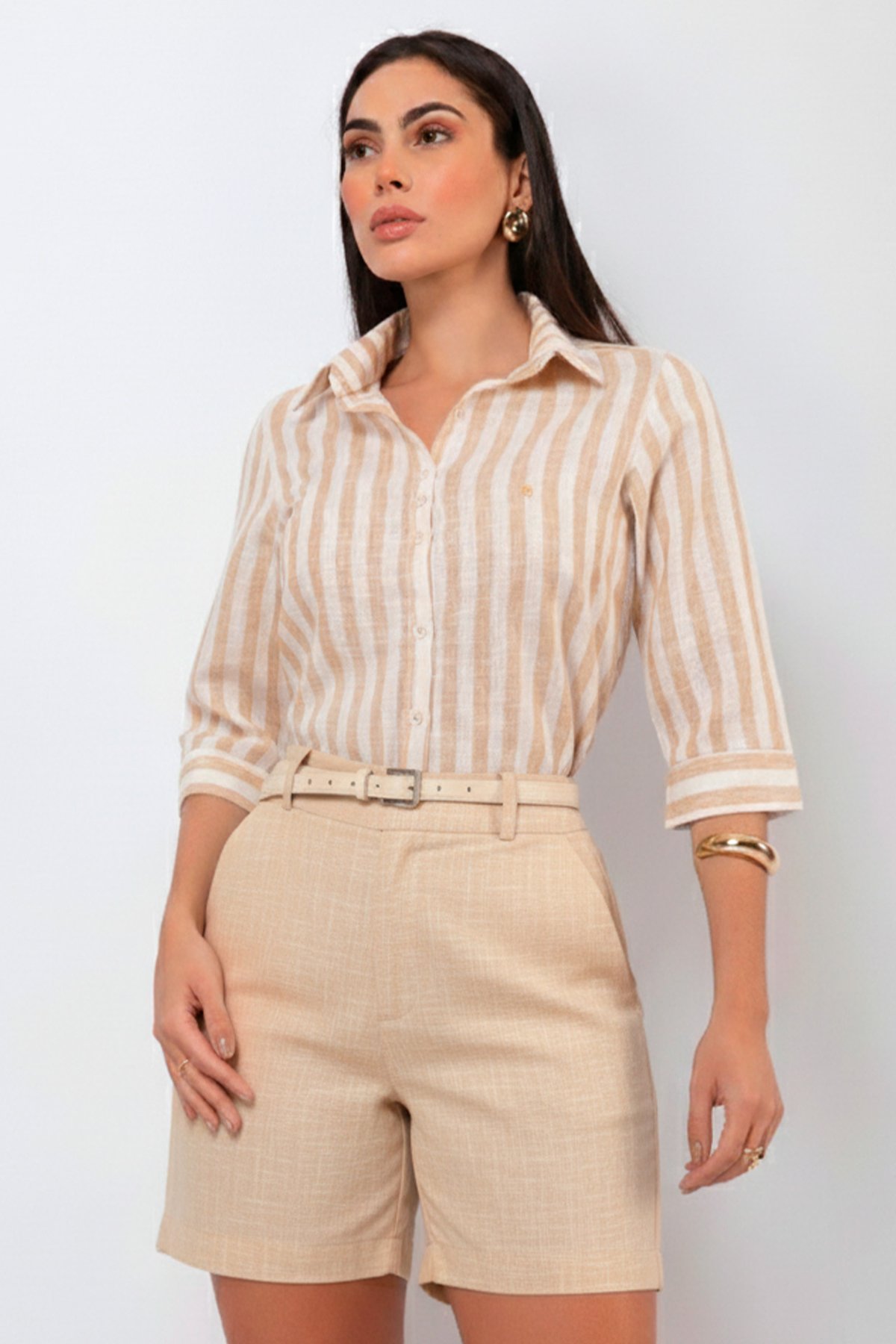 Charme da Manga 3/4: A manga três-quartos é um detalhe funcional e elegante. Ela adiciona um toque de charme ao look e é perfeita para deixar os pulsos à mostra, valorizando acessórios e trazendo leveza à composição.