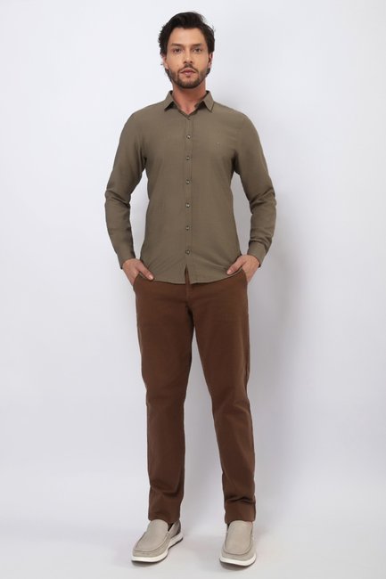 Camisa Manga Longa Texturizada Verde Militar – Zaiko