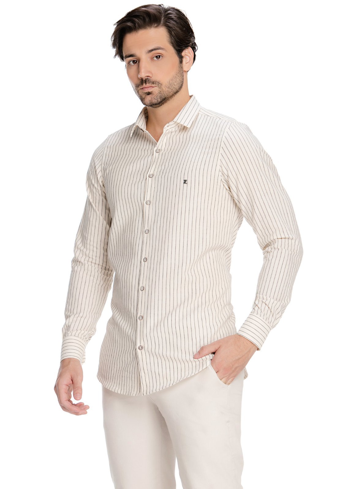 Descubra a sofisticação com nossa camisa social masculina, desenhada com um corte impecável na modelagem slim, projetada para proporcionar um ajuste mais justo e elegante ao corpo. Perfeita para o homem moderno que busca elegância e estilo em qualquer ocasião. É uma camisa versátil ideal para reuniões de trabalho, jantares elegantes e eventos especiais. A peça possui plaquinha com a logo da empresa no peito. Confeccionada em 100% Algodão. Tecido possui textura.